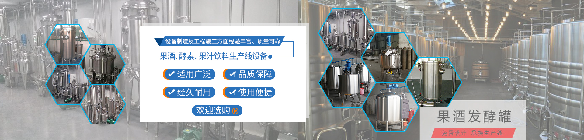 东铁专业生产高剪切乳化机、杀菌锅、果汁饮料生产线、果酒生产线、生物发酵罐、不锈钢发酵罐、不锈钢搅拌罐等 more+